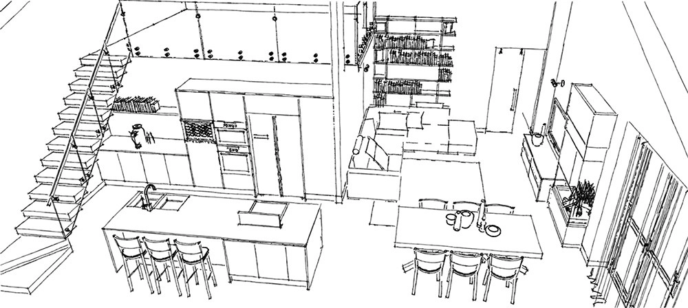 La priorità dei clienti era la zona giorno, da organizzare con una cucina a isola ampia e accogliente per momenti di convivialità. L’obiettivo: trovare un equilibrio tra praticità e un’estetica che desse risalto ai loro arredi di design.